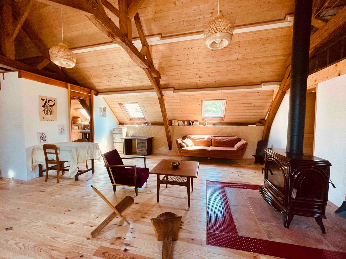 The private studio is located in an exceptional place, in connection with the nature and horses. Studio includes a large living room 50m² with a kitchen and a bathroom, including a mezzanine for sleeping. The studio is completely renovated. Located in the Sarthe, 30 mins from Le Mans (24H/Mans), 40mins from Laval and 15 mins from Sablé sur Sarthe. It's a peaceful and rejuvenating place. Kick back and relax in this calm, stylish space.