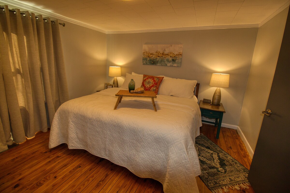 Descubre nuestro acogedor apartamento de 1 dormitorio en el centro de mediados de siglo en el distrito histórico de Florencia. A solo 9 minutos a pie o a 3 minutos en auto del vibrante corazón del centro de la ciudad, disfruta de pintorescas calles y encantadores edificios antiguos. A 2 minutos en auto o a 8 minutos a pie de la Universidad del Norte de Alabama, nuestro acogedor refugio es perfecto para aquellos que visitan Florencia. Ideal para 1 o 2 huéspedes, nuestro elegante apartamento cuenta con comodidades modernas, lo que crea una estancia inolvidable en esta encantadora ciudad del sur. Además, no tenemos tarifa de limpieza.