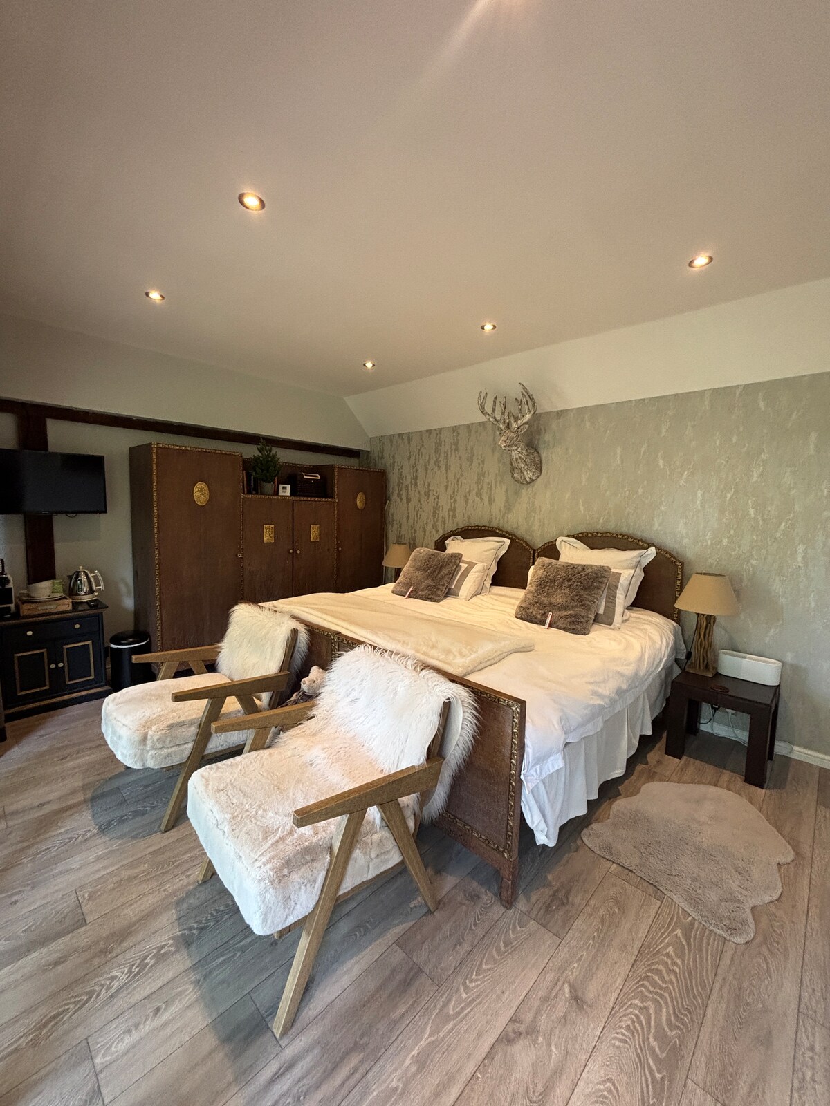 Este es un anexo independiente muy acogedor, que consta de un dormitorio doble con baño privado. Hay hervidor de agua, mininevera, tostadora y microondas, pero no hay otras instalaciones para cocinar. Se proporciona una toalla por persona. Cruasanes frescos y mermelada casera incluidos y llevados a tu puerta por las mañanas en ciertos días de la semana. Esto depende bastante de la hora a la que tenga que salir por la mañana, pero a menudo podemos acordar una hora. Por favor, pregunta.