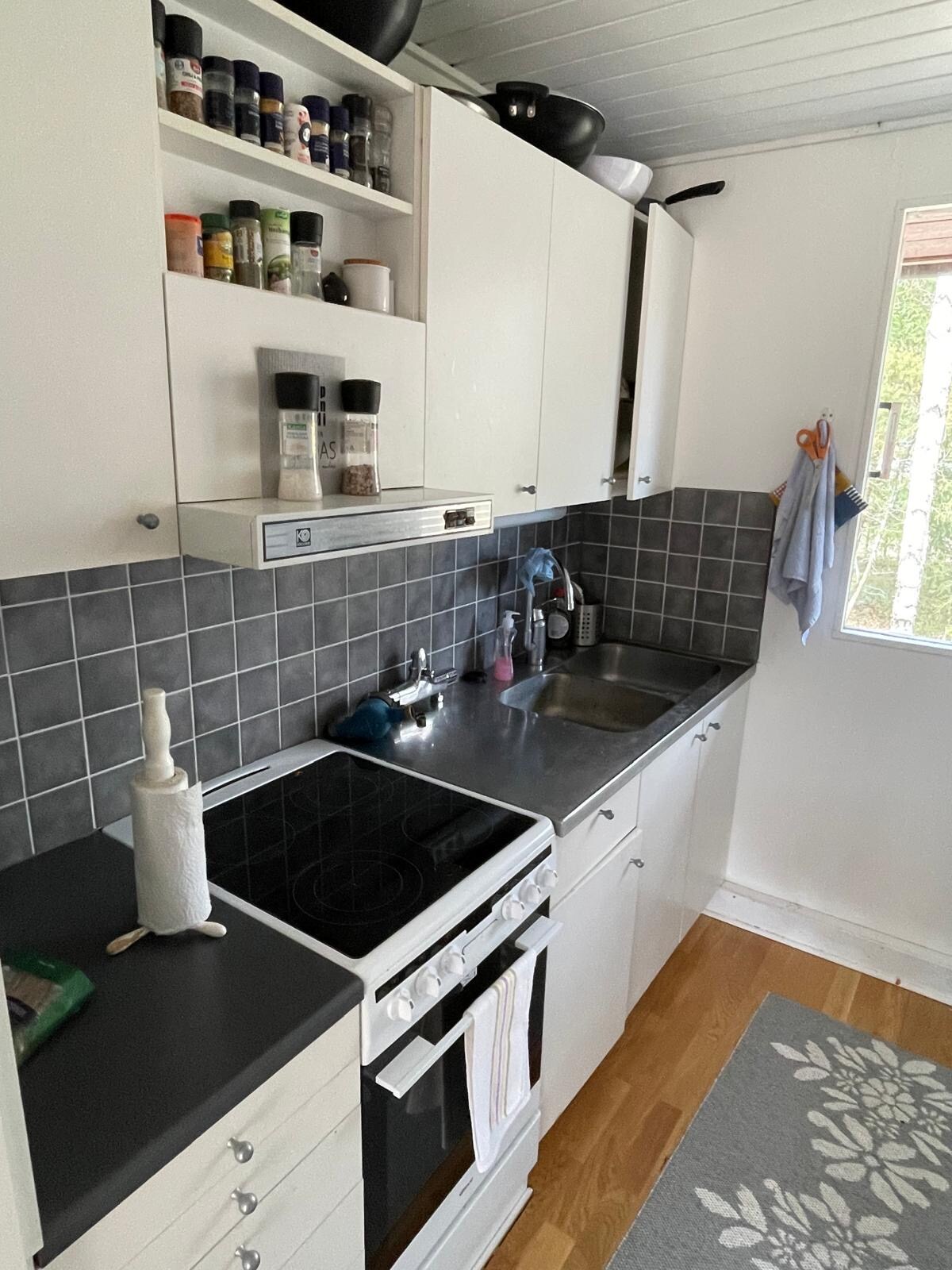 Fridfull villa vid sjön. Yta: 80 m2 inomhus + stor terrass och utebastu Antal bäddplatser är 6 separata sängar. Rum: Kök, vardagsrum, 3 sovrum, hall, badrum +bastu Faciliteter: öppen spis, kylskåp/frys, elektrisk spis och ugn, diskmaskin,microvågsugn, kaffebryggare, vattenkokare. På gården finns ytterligare en strandbastu.