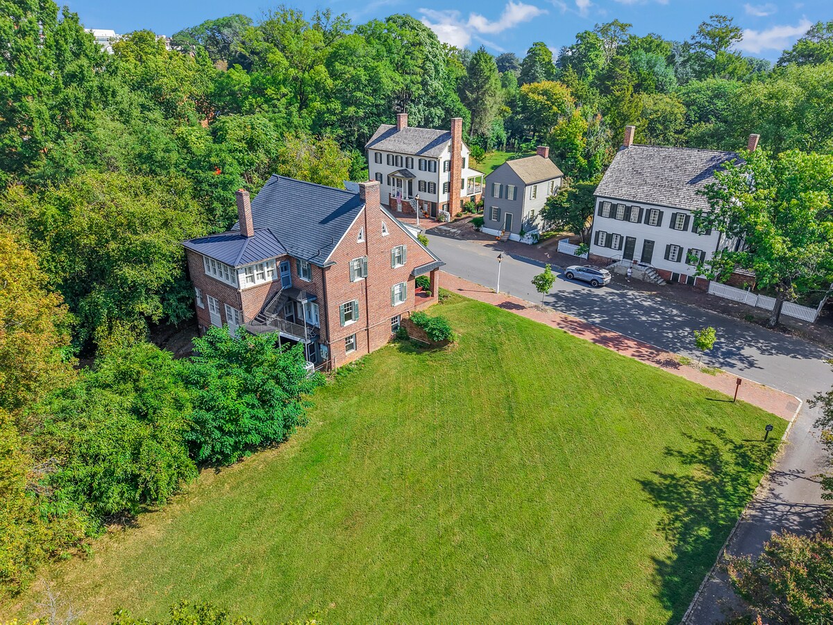 Retrocede en el tiempo y colócate en el histórico pueblo de Salem, el nombre elegido por los colonos moravos en 1766 porque significa "Paz". Más de 150 años después, el Sr. Owens, un exitoso ejecutivo de tabaco RJR, construyó la casa en 416 South Main Street en Winston-Salem para su familia. En 1930-31 dio la propiedad a la Iglesia Morava. La Iglesia dividió la gran casa en apartamentos de arriba y abajo utilizados hasta 2017 por familias misioneras y por otros amigos de la Iglesia.