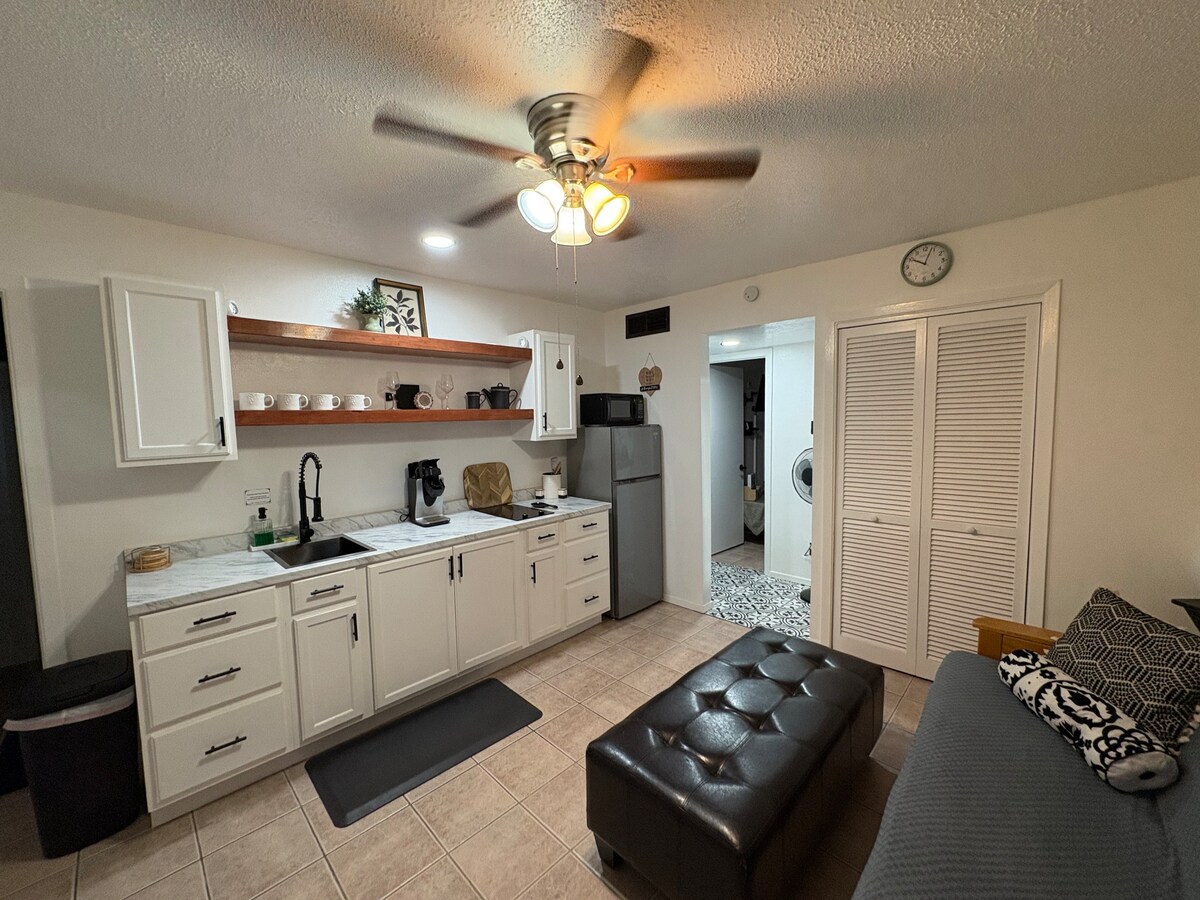 No traigas mascotas a la unidad. ¡Este pintoresco apartamento cuenta con todo lo que necesitas y mucho más! ¡Genial a largo o corto plazo! El espacio se encuentra en una casa de huéspedes independiente, pero tiene una entrada privada y un patio privado. La habitación tiene un rincón de lectura, cocina pequeña, futón, 2 televisores con canales locales y servicios de streaming a través de Fire Stick. Hay un lugar de estacionamiento designado para huéspedes o se puede utilizar el estacionamiento en la calle para varios vehículos. El vecino tiene un perro al aire libre, por lo que se espera que ladre.