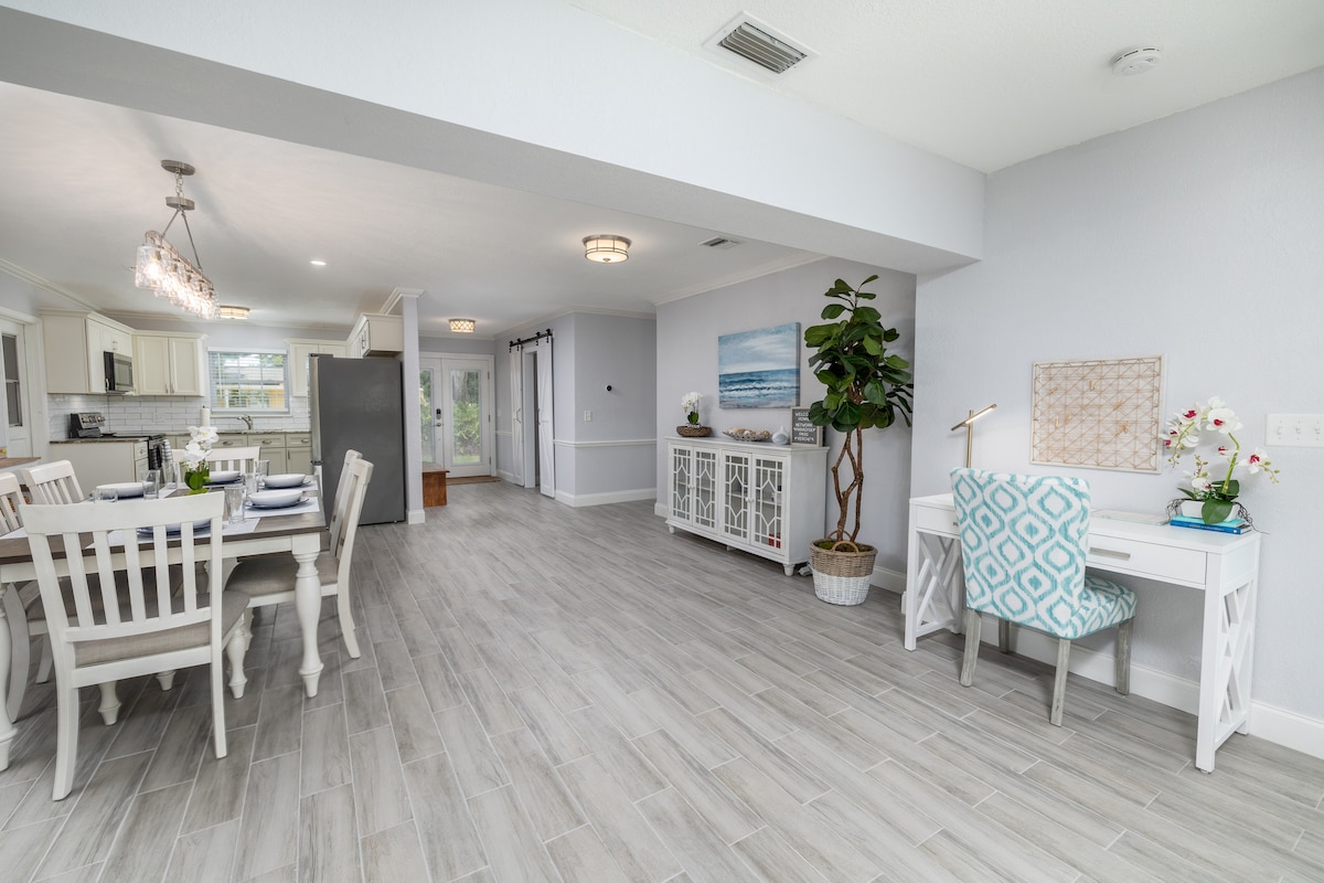 Bienvenido a nuestro Dodgertown Getaway, ubicado en el centro del codiciado destino de Vero Beach, Florida. La relajación total te espera mientras descansas alrededor de la piscina de agua salada con calefacción electrónica, escuchando cardenales y arrendajos azules alrededor de la miríada de palmeras y robles vivos que rodean la propiedad. Si deseas explorar nuestras playas de clase mundial, conduce 14 minutos para experimentar nuestras claras olas azules y nuestra exótica vida silvestre, desde tortugas marinas, delfines y manatíes.