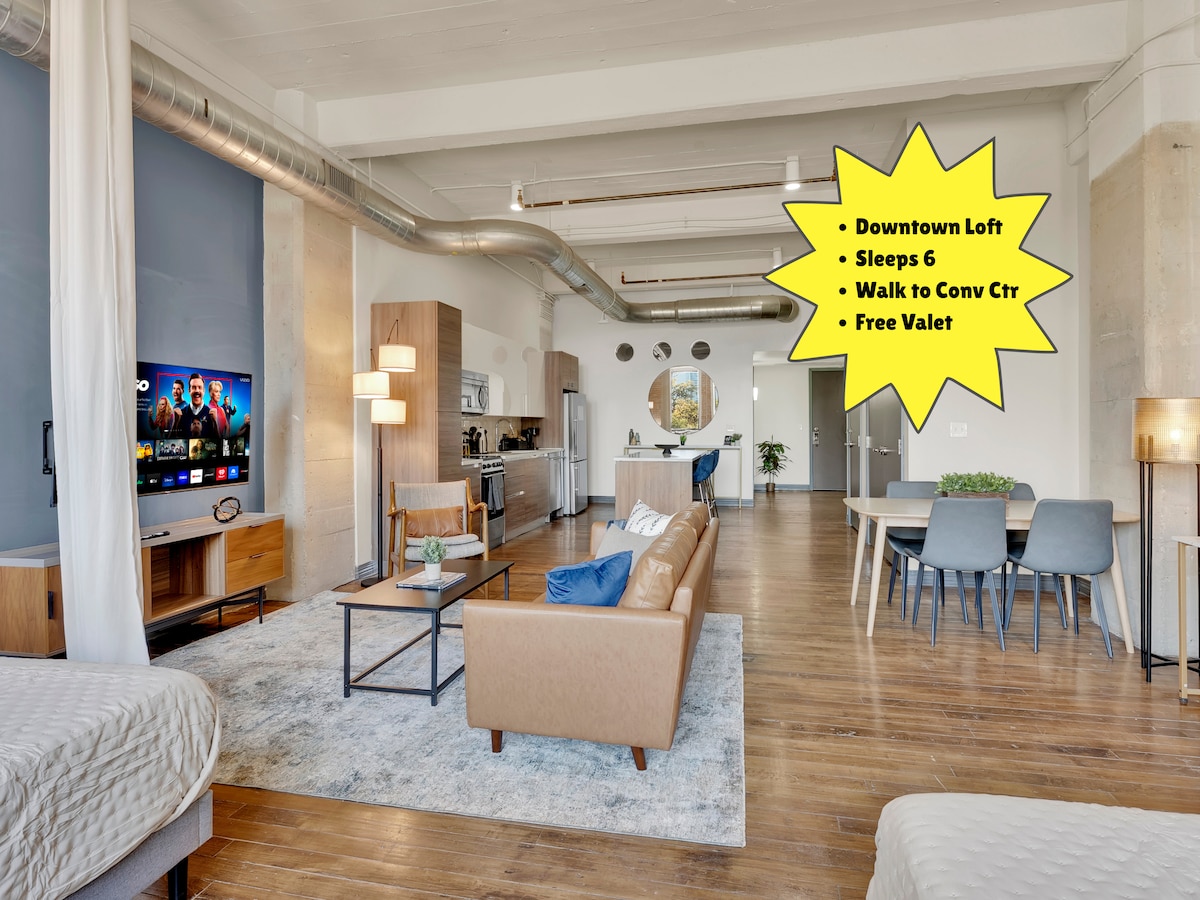 Downtown Loft for 6 I Walk to Conv Ctr I Valet