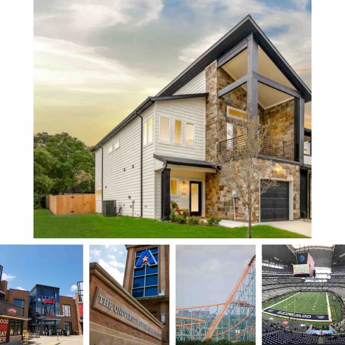 ¡Fans de los Dallas Cowboys! ¡Evita pagar más de 120 USD por estacionar en el estadio! Nuestro camino de entrada se adapta a 3 vehículos y se encuentra dentro de un callejón sin salida con estacionamiento gratuito en la calle (puede acomodar tus camiones grandes, remolques, incluso vehículos recreativos). El estadio AT&T está a solo 2,8 millas de distancia. ¡Uber barato al estadio con tu grupo por $15 o menos! ¿Tienes piernas fuertes? Puedes disfrutar de un paseo panorámico de 60 minutos. ¡Lugar perfecto para el día del juego! Amplia casa adosada de 3 dormitorios y 2 baños en un vecindario tranquilo, perfectamente ubicada dentro del distrito de entretenimiento de Arlington.