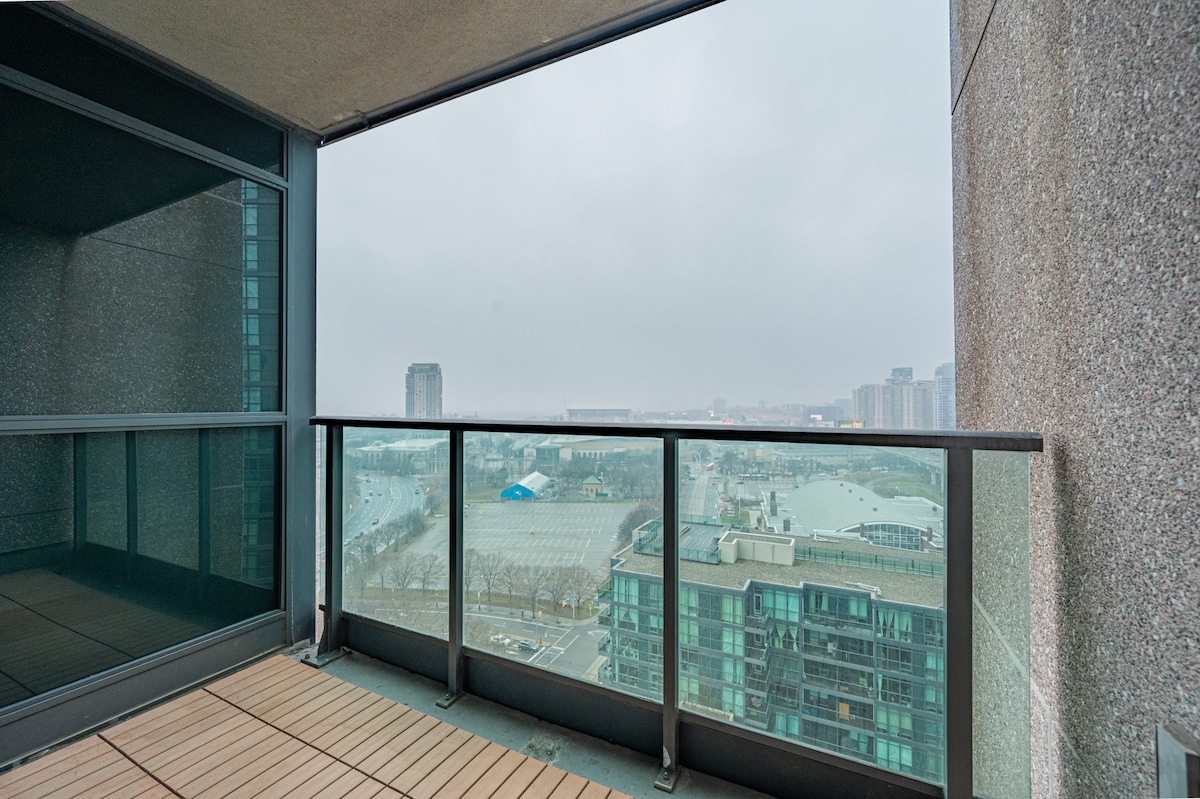 Your own studio/bachelor apartment with a view of a lake + everything you need to feel like you never left home. Work with a breathtaking view, fast and stable gigabit wifi,indoor parking,Air Conditioned and Heated suite. Wake up to an unobstructed view of Lake Ontario from close to the 30th floor. Be connected to the downtown core while close to Lake Ontario and Coronation Park. Steps from Exhibition, Budweiser stage, Porter Airport, CN tower, Rogers Centre, King St W and Liberty Village.