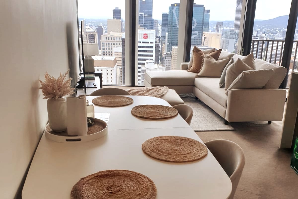 Nuestro impresionante apartamento de un dormitorio con cama tamaño king y vistas al río y al jardín botánico es perfecto para estancias cortas y largas. Situado en el interior del distrito financiero, ¡el edificio SkyTower de Brisbane está cerca de todas partes! Las características del apartamento incluyen: - Amplio dormitorio con cama tamaño king y armario empotrado. Se proporcionan toallas y sábanas limpias. - Sofá cama en la sala de estar. - Aire acondicionado centralizado. - Cocina de gas con cocina completa de chef. - Zona de lavandería escondida. - Lavadora y secadora. - Cafetera. - TV inteligente. - Wifi gratuito.
