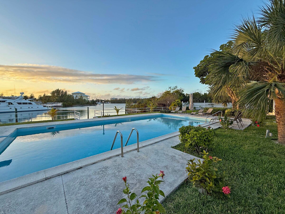 ¡Nuestra propiedad frente al mar tiene diversión y sol y te estamos invitando! Escapada serena frente al canal en una comunidad de apartamentos amigable y tranquila. La playa de Taino está a 12 minutos a pie. Cómoda casa de 2 dormitorios lejos de casa, para relajarse con la familia, un alojamiento maravilloso. Disfruta de las hermosas comodidades que incluyen una piscina, una sala de recreación, completa con juegos de mesa, ¡perfecta para una noche de juegos en interiores! Estamos cerca de restaurantes, playas y tiendas de comestibles. El mundialmente famoso mercado de Port Lucaya está a solo unos pasos.