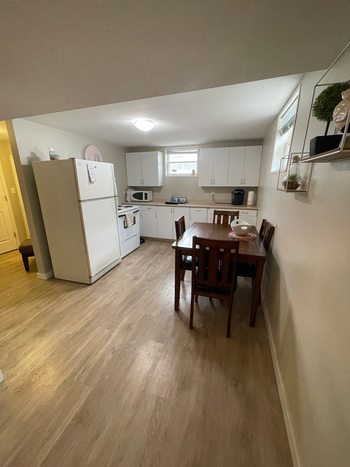 This suite has a full sized kitchen and laundry machines. There is also Wifi and a smart TV with Telus Optik. You may use the TV to access your personal streaming accounts. The bedroom has a queen sized bed, dresser and portable heater for the folks who like it warm and cozy. The hosts live upstairs with Fleetwood, a friendly, well-behaved Bernedoodle. We are very noise conscious. However, normal basement noise is expected. Feel free to reach out with any questions.