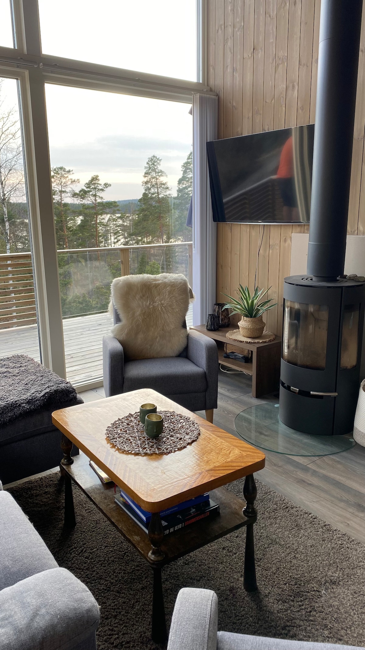 Estamos alquilando una cabaña nueva y moderna. Hay 3 dormitorios, adecuados para 6 personas. La cabaña tiene buenas condiciones de sol durante todo el día. Es un gran lugar para pasar días de verano perezosos con largos almuerzos, un paseo hasta la playa para bañarse, un desastre con uno de los barcos (que es libre de pedir prestado). La cabaña es muy adecuada para familias, pero también para adultos que quieren disfrutar de la tranquilidad del bosque. Hay muchas oportunidades de senderismo, actividades al aire libre y posibilidades de pesca en el área.