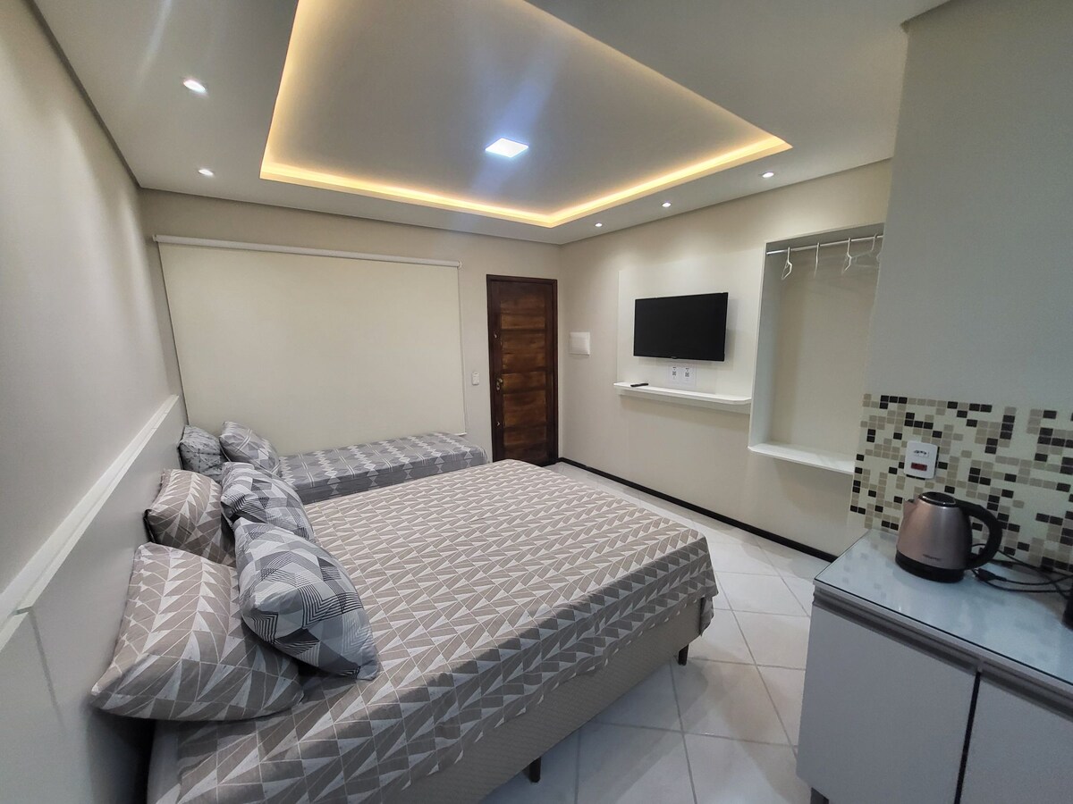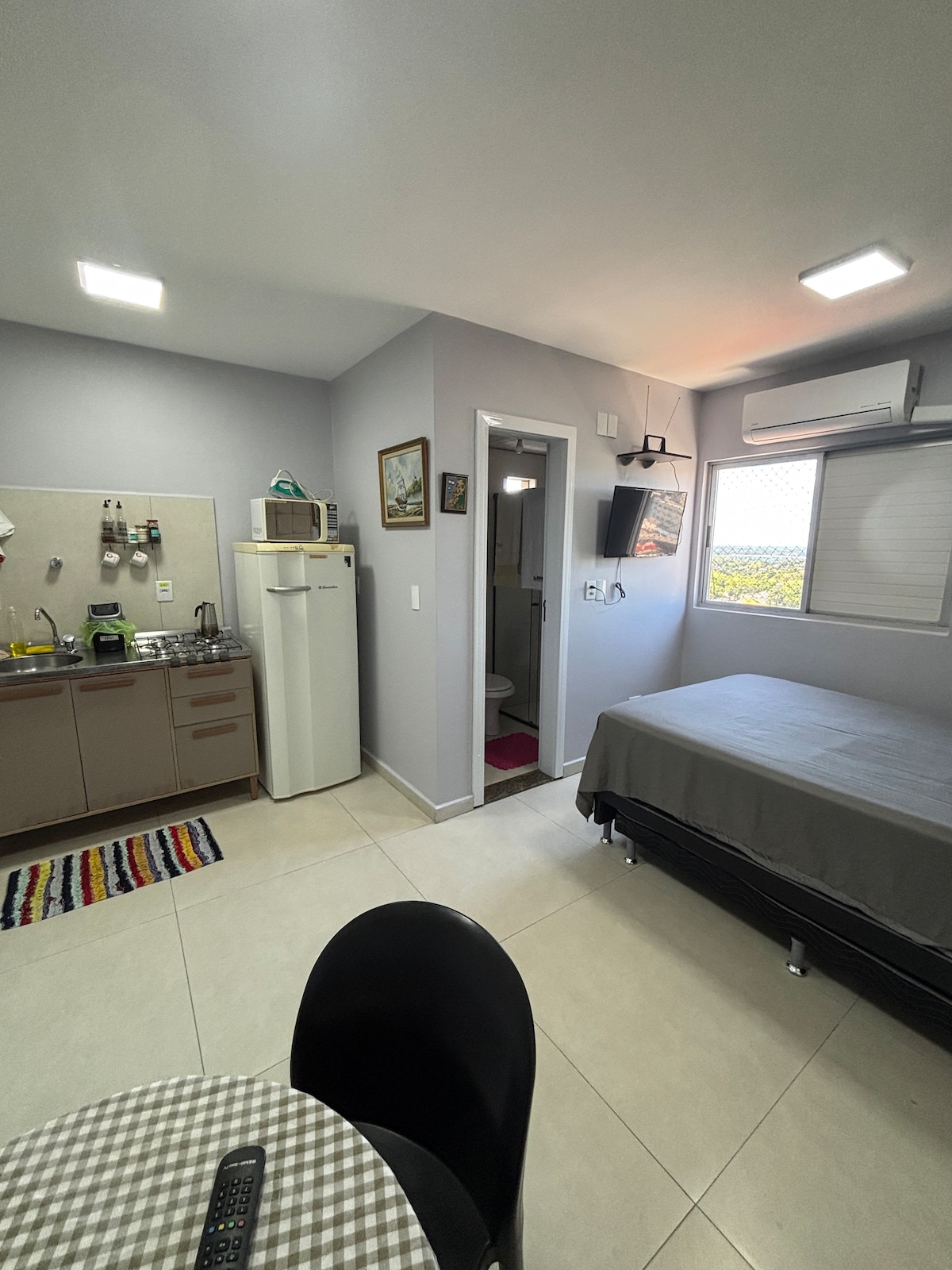 Disfrute de la comodidad de un loft moderno en el centro de Foz de Iguazú. Acomoda hasta 3 personas y ofrece aire acondicionado, internet dedicado y Smart TV. La cocina está completamente equipada para su comodidad, y el baño renovado brinda aún más confort. El edificio cuenta con portería 24h para mayor seguridad y tranquilidad. Cerca de la Av. Brasil, mercados, restaurantes y del TTU. Una estadía práctica, acogedora y muy bien ubicada.