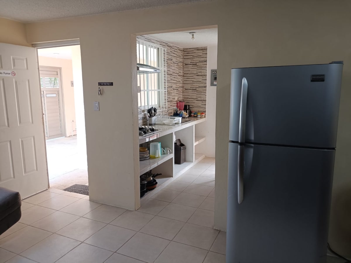 Confortable y seguro departamento con alberca para niños y adultos frente del centro comercial Forum. Este espacio es un departamento que cuenta con dos recamaras y dos baños completos. Una de las recamaras tiene cama doble y la otra dos camas individuales, además existe una sala de entretenimiento, una sala-comedor y una cocina que está perfectamente equipada y lista para usar. Casa Ofelita tiene WIFI, climas y ventiladores y un estacionamiento privado de fácil acceso.