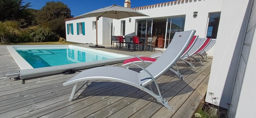 GANAS DE VACACIONES ❤️ DE DESCUBRIMIENTO, DE DESCUBRIMIENTO... tengo algo para usted ... Sígueme ..... 👉Venga a descubrir esta hermosa isla en la costa atlántica, que le seducirá con estos numerosos paseos y calas por descubrir. 👉Casa de 150 m2 tranquila un callejón sin salida -5 camas dobles -2 baños+una zona de lavabo -Piscina exterior climatizada de mayo a octubre, según el clima -ter de bolas 👉¿Está lloviendo? no se asuste, paleta y dardo a salvo, le espera y muchos juegos.