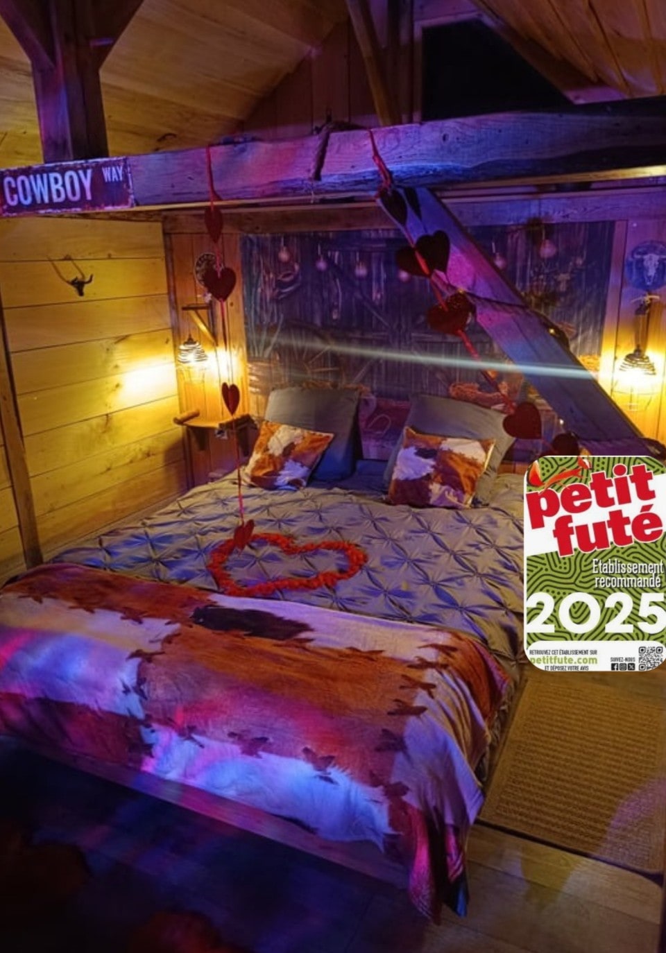 Establecimiento recomendado por "Pequeño elegante" ¡Un ambiente western en el corazón de la campiña de Borbonesa! Una cama de 160, un refrigerador, una cafetera, un hervidor de agua, una calefacción y un microondas para una autonomía y libertad en cualquier época del año . Un espacio privado al aire libre con un brasero, un baño privado en un edificio con calefacción y aislado a unos 50 metros del pequeño rancho con toallas de baño. Los desayunos están incluidos en el precio y serás autónomo.