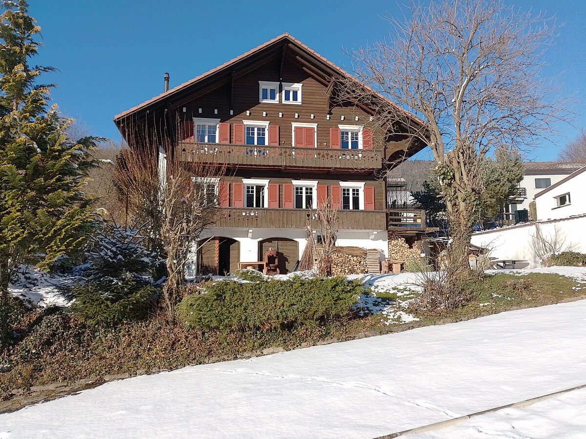 Déjese mecer por los sonidos de la naturaleza en este alojamiento único. Antigua granja típica de las Franches-Montagnes que data de 1700 y que acaba de ser totalmente renovada en 2023 para darle la bienvenida en un entorno verde o de oro blanco. Podrá disfrutar de las rutas de senderismo, equitación, así como de las pistas de esquí de fondo y del telesilla de Les Breuleux. Información para los jinetes, nuestra casa puede alojar a una docena de caballos durante el período de mayo a octubre.