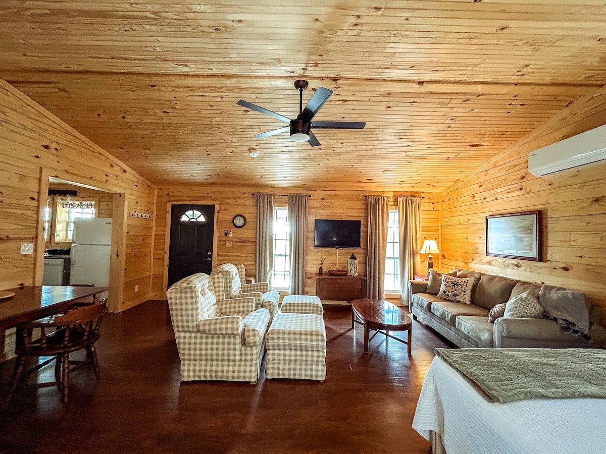 Mi cabaña tipo estudio está rodeada de árboles de madera dura, senderos para caminar y praderas elegantes. Hay muchas actividades para familias cerca, como un campo de golf de disco, The Farm Community, tiendas de antigüedades, mercados Amish y la mejor barbacoa de Tennessee. Te encantará alojarte en esta tranquila y silenciosa cabaña en el bosque por su comodidad, techos altos, luz natural y ubicación. Mi casa es ideal para parejas y aventureros solitarios. Se admiten mascotas con previo aviso.