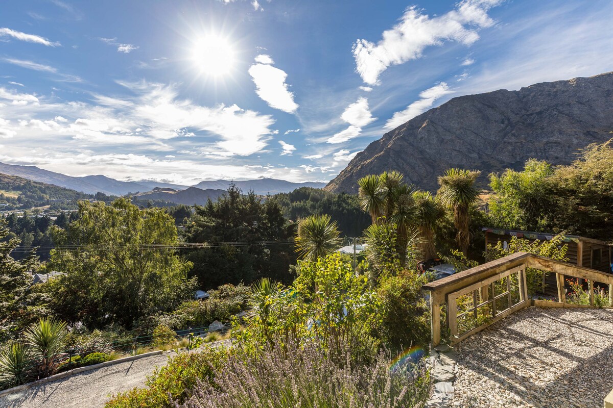 Nuestro estudio de invitados está situado en lo alto de Arthurs Point, con vistas al valle, con magníficas vistas sin obstáculos a las montañas y hacia Coronet Peak. El desayuno (pan casero) está incluido. Amplia habitación, con cocina americana, nevera/congelador, microondas, tostadora, hervidor de agua y fregadero. No hay fogones para cocinar. Patio privado. ¡Tranquilo, idílico, con mucho sol! A 5 minutos en coche de Qtown. A 15 minutos de Arrowtown. Aparcamiento en las instalaciones.