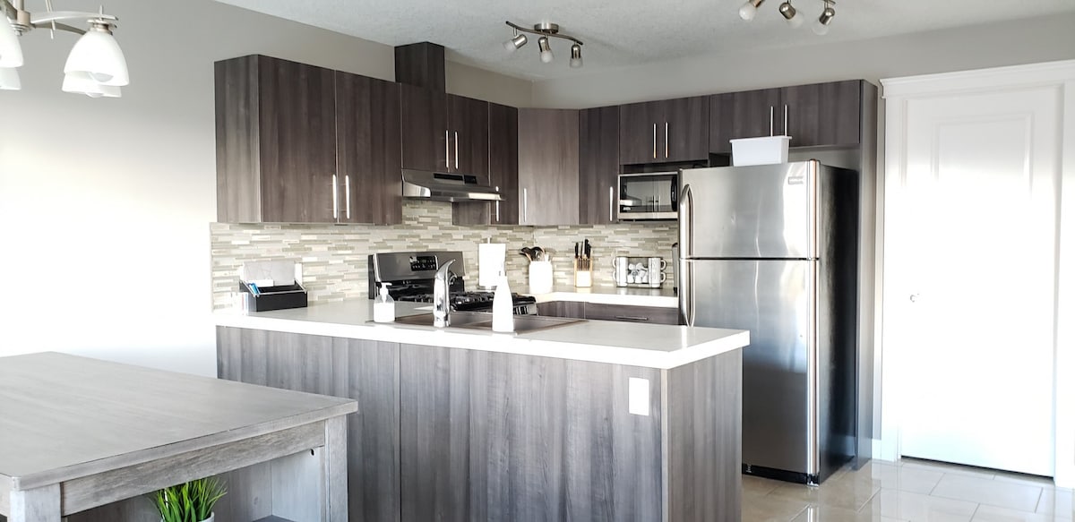Disfruta de una experiencia de lujo en este céntrico apartamento. La propiedad está convenientemente ubicada cerca del nuevo Hospital Regional de Grande Prairie, el Politécnico del Noroeste y prácticas opciones de compras. Situado a lo largo de un sendero para caminar y andar en bicicleta que conecta con kilómetros de senderos pavimentados a través del hermoso parque Muskoseepi, en cuestión de minutos puedes estar rodeado de naturaleza. La propiedad ha sido diseñada y amueblada con muebles y ropa de cama cuidadosamente seleccionados para garantizar tu comodidad y disfrute.