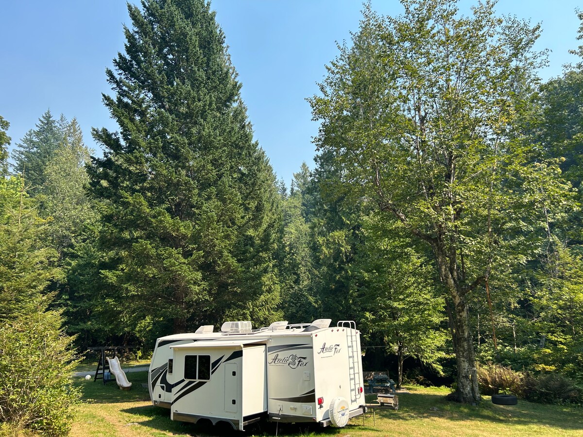 Stay in our private beautiful lakefront property and make a lifetime memory. If you skip camping because of all hassle, here is your place. **search whonnock lake glamping on youtube** This RV has everything a group of 6 needs, just bring your favorite food, drink, and camping vibe and enjoy. Located in Maple Ridge, you normally have a 40-50 min drive from Vancouver. This brand new 20-foot RV includes: - Shower, - flushable toilet - Kitchen, - 2 Queen-size & 2 bunker beds