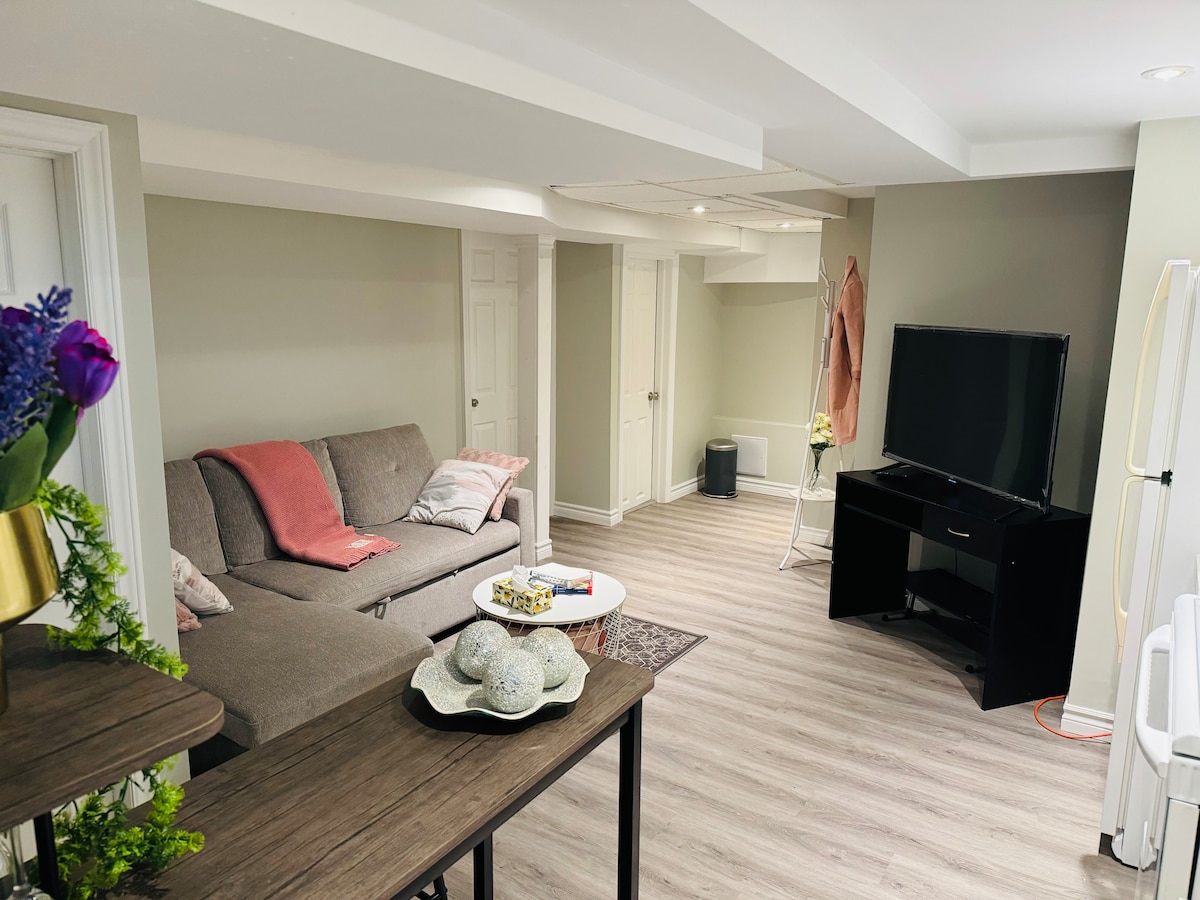 Disfruta de los encantadores toques de esta acogedora suite en el sótano con un toque moderno y limpio. Hermosamente decorada con una espaciosa salón abierto/cocina con una amplia isla y un baño iluminado con ducha de pie. Esta suite de invitados con su propia entrada privada es luminosa y cálida. Convenientemente ubicado: a 5 minutos a pie del centro de la ciudad de Pickering, a 10 minutos a pie de Pickering GO y a 2 minutos en coche de 401.