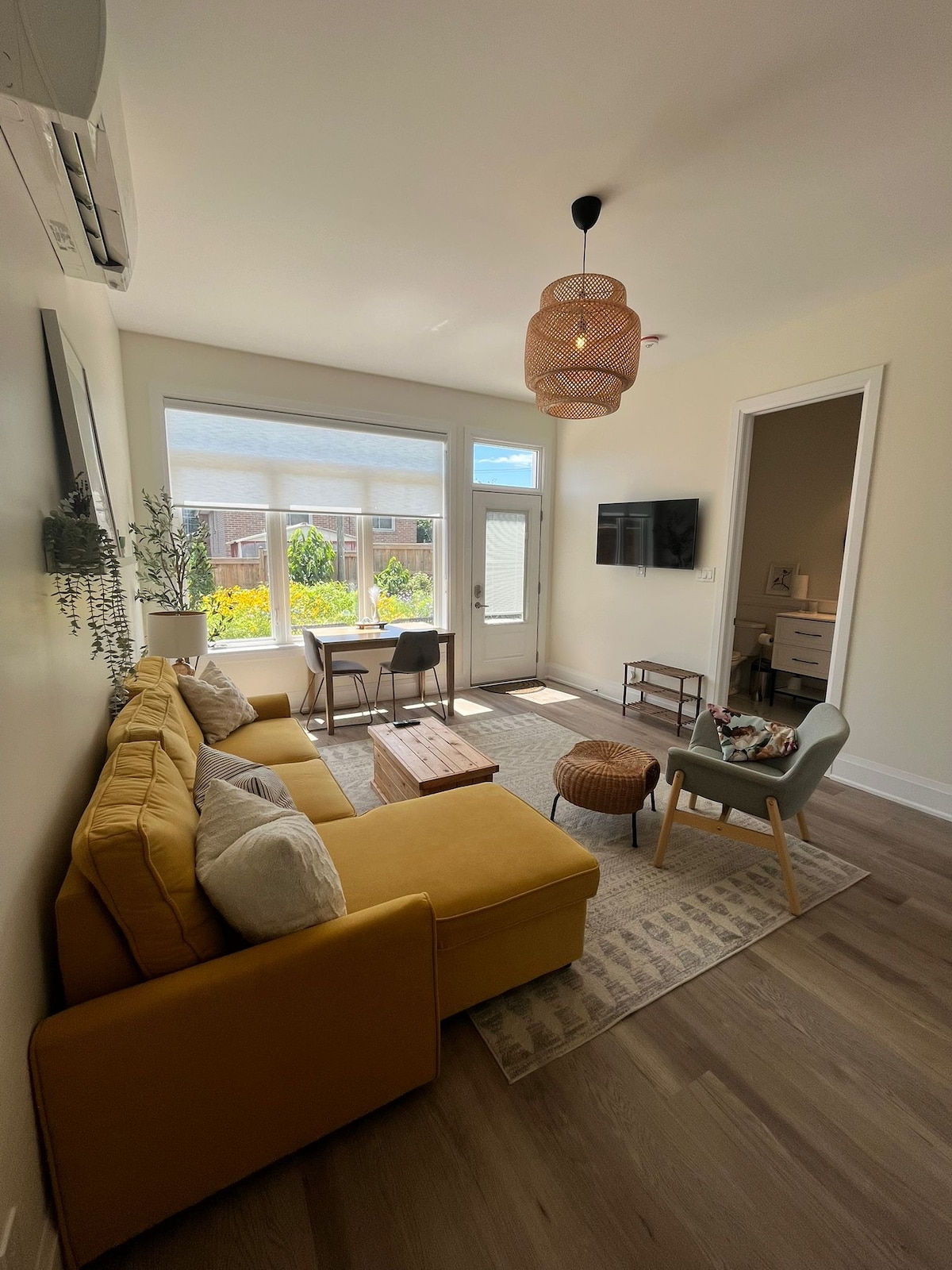 1 dormitorio • 1,5 baños • Unidad privada completa Recientemente renovado y tranquilo, a pocos minutos de la autopista 401 y de los restaurantes locales. LO más destacada • Llegada autónoma privada • Estacionamiento en la entrada para 1 coche. • Sauna privada. • Televisión de 55 pulgadas con Netflix. Prestaciones Toallas frescas, ropa de cama, cepillos de dientes y pastas, secador de pelo, artículos básicos para el hogar, artículos básicos para la ducha y almohadas/toallas adicionales a pedido. Alojamiento impecable, respuestas rápidas y comodidad garantizada: reserva con confianza.