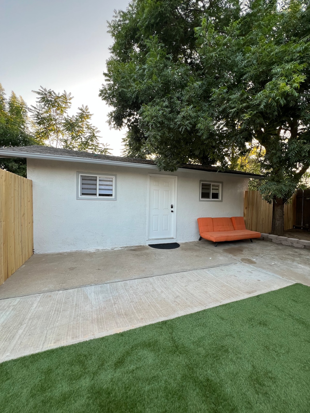 Estás reservando SOLO 1 DORMITORIO (SOLO 1-2 huéspedes) Esta es una nueva casa de estilo moderno con 1 dormitorio, una entrada privada, 1 baño/ducha y una pequeña cocina. Nuestro vecindario es muy seguro y tranquilo. El alquiler es una casa dentro de una casa, pero bloqueada por una puerta cerrada con llave para tu privacidad. La pequeña cocina tiene: - Microondas - Mininevera - Cafetera - Tostadora - Hervidor NO incluye: lavadora/secadora o estufa/horno Opción de 2 dormitorios disponible para esta misma casa de huéspedes, anuncio diferente a mi nombre.