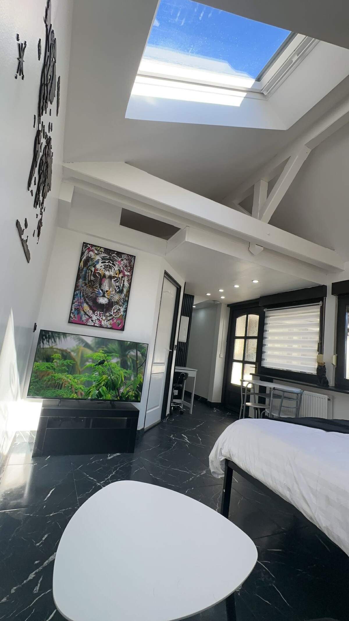 Acomódese en este alojamiento cálido, luminoso y con aire acondicionado, perfecto para una estadía relajante o profesional. A pocos pasos, disfrute de las tiendas y servicios: panadería/tienda de comestibles/tabaco, carnicería, pizzería, comida rápida kebab, lavandería. También se beneficia de un punto de carga para vehículos eléctricos. ¡Un ambiente cálido y cómodo, una decoración cuidada y todas las comodidades para sentirse como en casa!