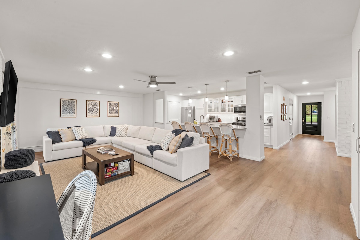 La Casa Caballero es una casa reformada y decorada con buen gusto cerca del centro de Frisco. Barrio tranquilo con 4 dormitorios, 2 baños, oficina y un concepto de cocina/sala de estar abierta. Luminosa, esta casa permite que la familia tenga espacio dentro y fuera con un enorme patio trasero con chimenea, zona de comedor e incluso un arenero. O un profesional de negocios puede tener espacio para trabajar con las comodidades del hogar. Estás a poca distancia a pie de todo tipo de restaurantes, cafeterías y tiendas divertidas en el centro de Frisco.