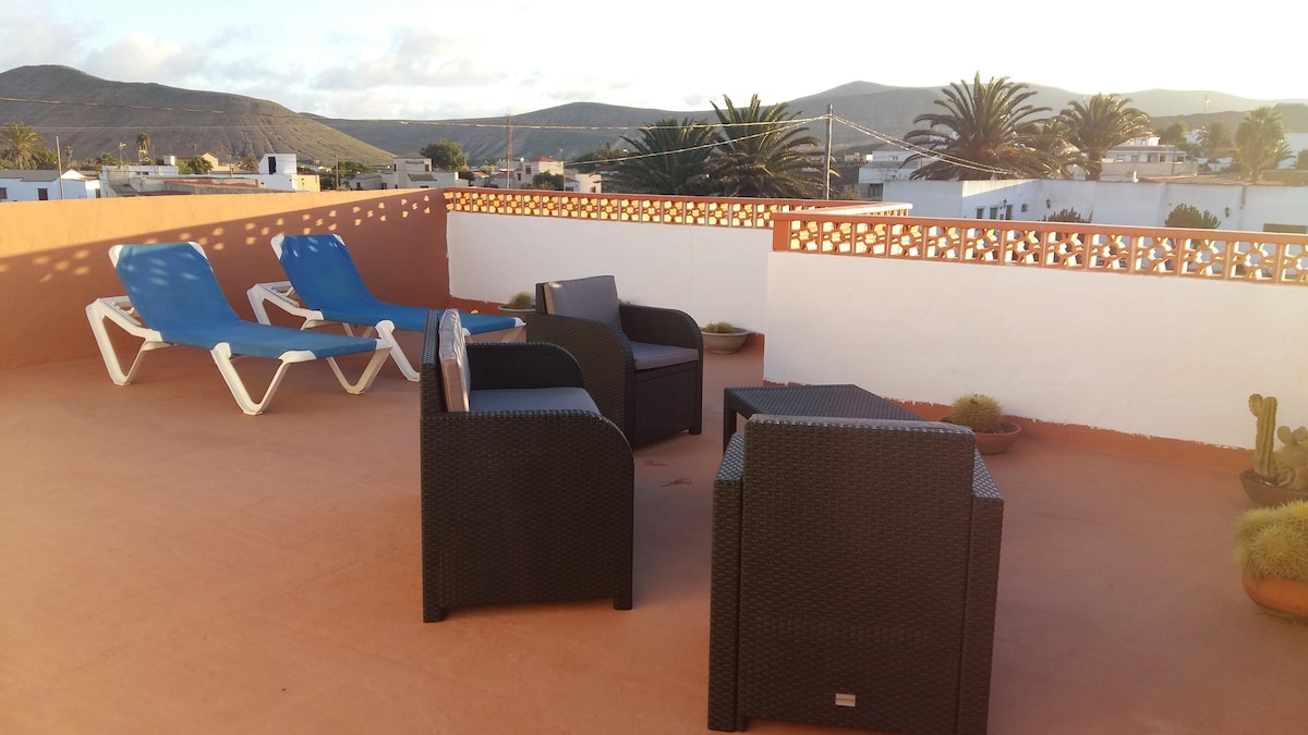 Dedicato a chi desidera trascorrere una vacanza in totale relax, affittiamo un appartamento a El Roque. Composto da camera matrimoniale, cucina, soggiorno con divano letto, bagno e patio privato, è dotato di ogni comfort. Dista 2 km da Las Grandes Playas e 5 km dal Faro del Toston, che si può ammirare anche dalla terrazza solarium insieme a una vista mozzafiato sul Parque Natural. Potrete fare la spesa nel vicino supermercato o cenare in uno degli ottimi ristoranti de El Cotillo ( a solo 1 km).