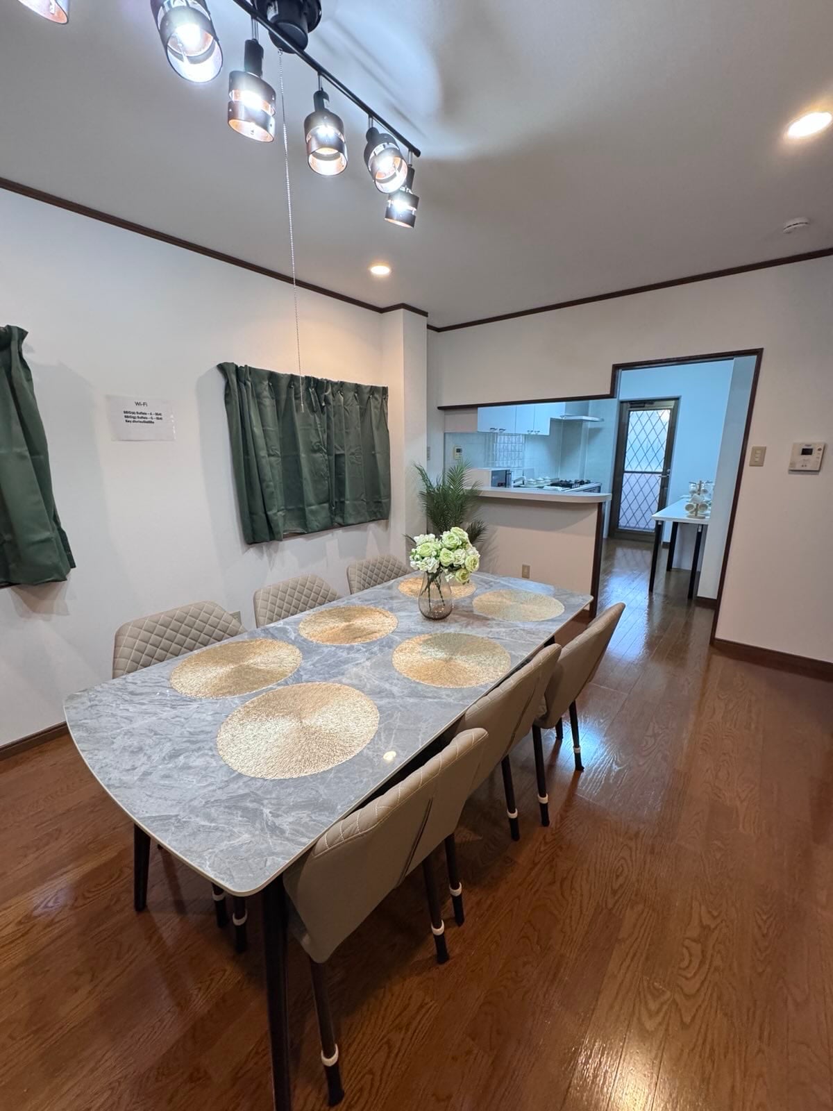 Ubicado a 4 minutos a pie de la estación de Dazaifu, a 1 o 2 minutos a pie de un supermercado y de una tienda de comestibles, y con varios restaurantes en los alrededores, el hotel Mei-no-Yugetsu promete una estancia agradable. Esta espléndida casa unifamiliar de nueva construcción, de estilo moderno japonés, tiene capacidad para un máximo de 11 personas. Hay dos plazas de aparcamiento gratuitas, por lo que también puede utilizarlas como base para su viaje por Kyushu. El dormitorio principal está equipado con un proyector con pantalla eléctrica y un contrato con U-NEXT para que pueda disfrutar de sus películas y dramas favoritos en una pantalla grande. Además, en el balcón hay una mesa y sillas para disfrutar de una comida o bebida con estilo. El amplio salón comedor está equipado con una mesa de madera maciza con capacidad para 8 personas y un sofá en forma de L de alta calidad, como el de un hotel, para que pueda sentarse cómodamente. En cuanto a las instalaciones, están equipadas con lavadora y secadora, por lo que no tendrá problemas para lavar la ropa, incluso si se aloja durante varios días o durante un largo periodo de tiempo. Para que su estancia sea lo más cómoda posible, disponemos de cafetera Nespresso, para que pueda relajarse con una taza de café después de su viaje. En el libro de guía encontrará un mapa de restaurantes de los alrededores, que le servirá de referencia para sus comidas.