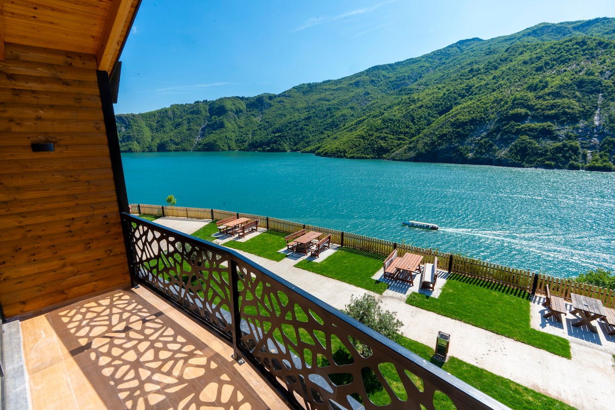 Te damos la bienvenida a 5 villas STINET Cinco villas de madera nuevas te esperan para darte la bienvenida y ofrecerte un entorno tranquilo, ubicadas a lo largo del hermoso lago de Koman, todas las villas tienen todo lo necesario para que disfrutes cada minuto que estés aquí para descansar y disfrutar de la comida tradicional, las bebidas y, por supuesto, un buen raki. Si te apetece descansar de las grandes ciudades y realmente refrescarte la mente y el alma, te esperamos y te prometemos que te irás con los mejores recuerdos e impresiones.