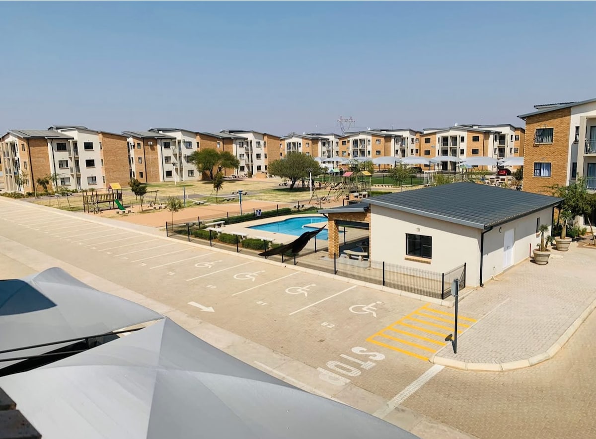 Escape the chaos! Our 2 bedroom lair's got you covered – poolside braais, volley ball and 5 aside pitch,smart TV, and AC to keep it chill . Gated community, 24/7 security, and parking that's actually covered . 2 mins from Bokamoso private hospital , 5 mins from Mmopane highway Spar . Business, pleasure, or just need a vibe? Book now!