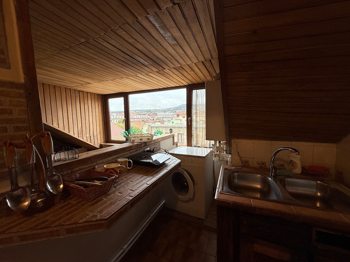 Bienvenido a nuestro acogedor apartamento rústico ubicado en el corazón del antiguo Tiflis, que ofrece impresionantes vistas de la catedral de Sameba. El apartamento está situado en un barrio encantador y auténtico, conocido como el «patio italiano», y es el lugar perfecto para explorar la ciudad histórica. El apartamento cuenta con una decoración rústica, con todas las comodidades modernas que necesitas para sentirte como en casa. Ven y vive el encanto de la antigua Tiflis en nuestro hermoso apartamento rústico.
