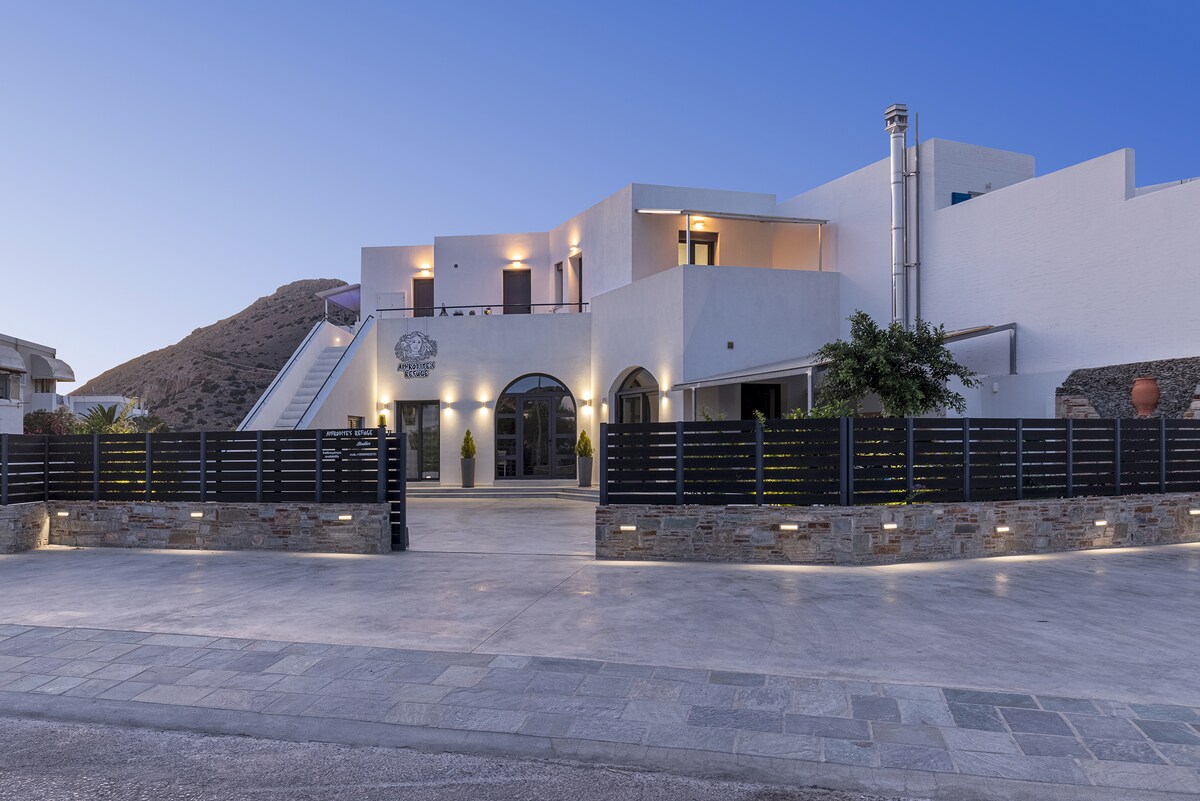 ¡Tu apartamento de bienestar de lujo frente a la playa te espera en la mágica isla de Syros ! ¡Disfruta de unas impresionantes vistas panorámicas al mar desde tu terraza privada frente al mar Egeo y experimenta unas vacaciones de ensueño en el destino perfecto para el verano! Nuestras camas tienen colchones y almohadas TEMPUR que te ofrecen el mejor sueño terapéutico. Combina las vacaciones y el bienestar participando en los tratamientos de nuestro centro de bienestar de clase mundial en la misma planta.