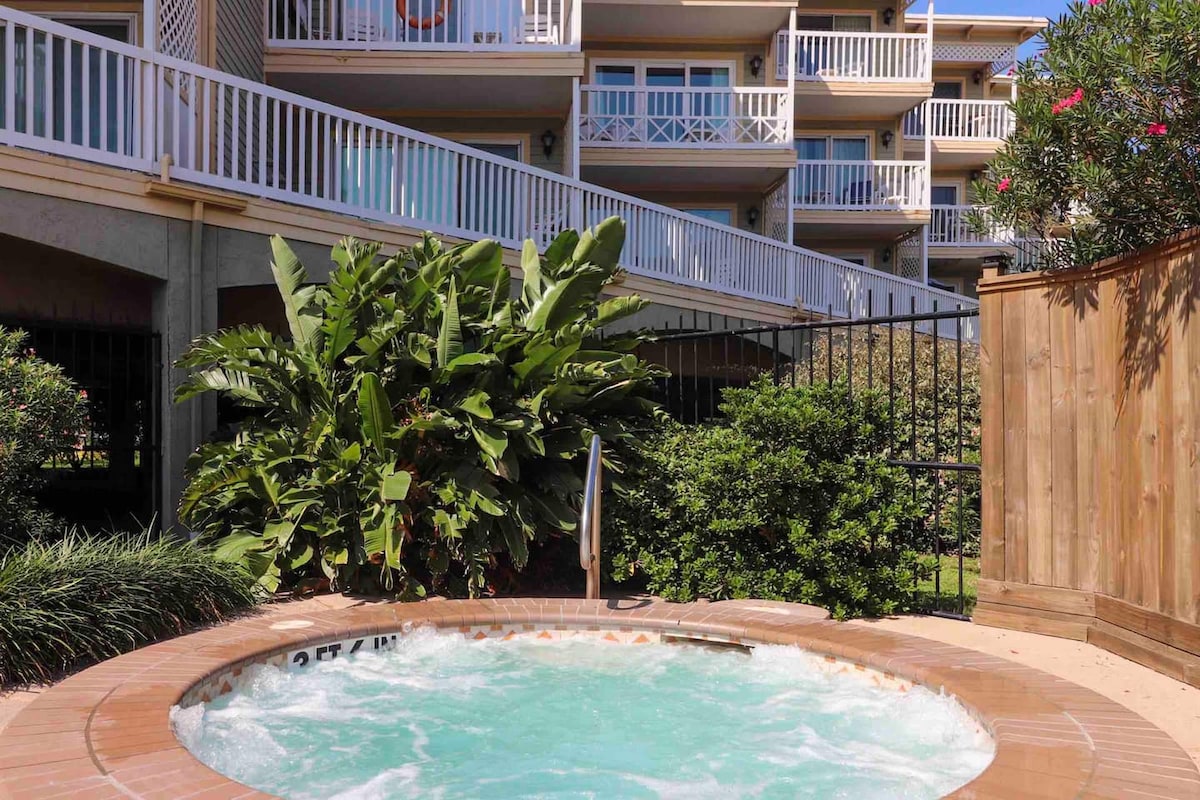 ¡Este condominio único y recién renovado es perfecto para amigos, familias y parejas! Ya sea que te quedes y te sientes en tu gran porche privado viendo la vista despejada del océano o visitando la pintoresca ciudad de Galveston, ¡este acogedor condominio es la opción correcta para ti! El interior es cálido, reconfortante y espacioso, con todos los servicios que necesitarías para unas vacaciones excelentes. Al otro lado de la calle de la playa, ¡una excelente ubicación para las atracciones, con piscina y jacuzzi!