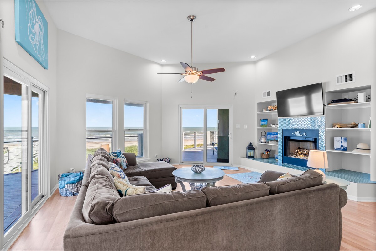 ¡Vistas al mar sin obstáculos! Se ve hasta la playa de Galveston. Cuatro dormitorios y 3 baños y un aseo. Mucho espacio y varias cubiertas para disfrutar del sol. Tienes espacio para entretenerte dentro de la casa de playa, pero también debajo, donde encontrarás un gran bar incorporado, barbacoa de propano/carbón, columpios, hamaca y ducha exterior. Patio vallado. Paso privado a la playa. Cocina gourmet con despensa. Televisores en todas las habitaciones. ¡El dormitorio principal tiene bañera de inmersión con vistas a la playa! Capacidad para 14 personas.