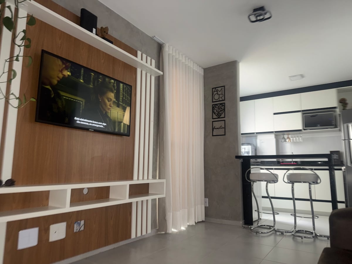 Apartamento aconchegante no 2º andar, em Condomínio fechado, com 1 vaga de garagem, portaria 24h, elevador e área de lazer com piscina (que deverá, o uso, ser pré acordado com a anfitriã), na divisa com o Distrito Federal. A acomodação conta com fechadura digital, wi-fi, tv smart, local para estudo/trabalho, ducha higiênica no banheiro, geladeira, panelas, cama de casal confortável e cama solteiro king. NÃO oferecemos toalhas de banho.