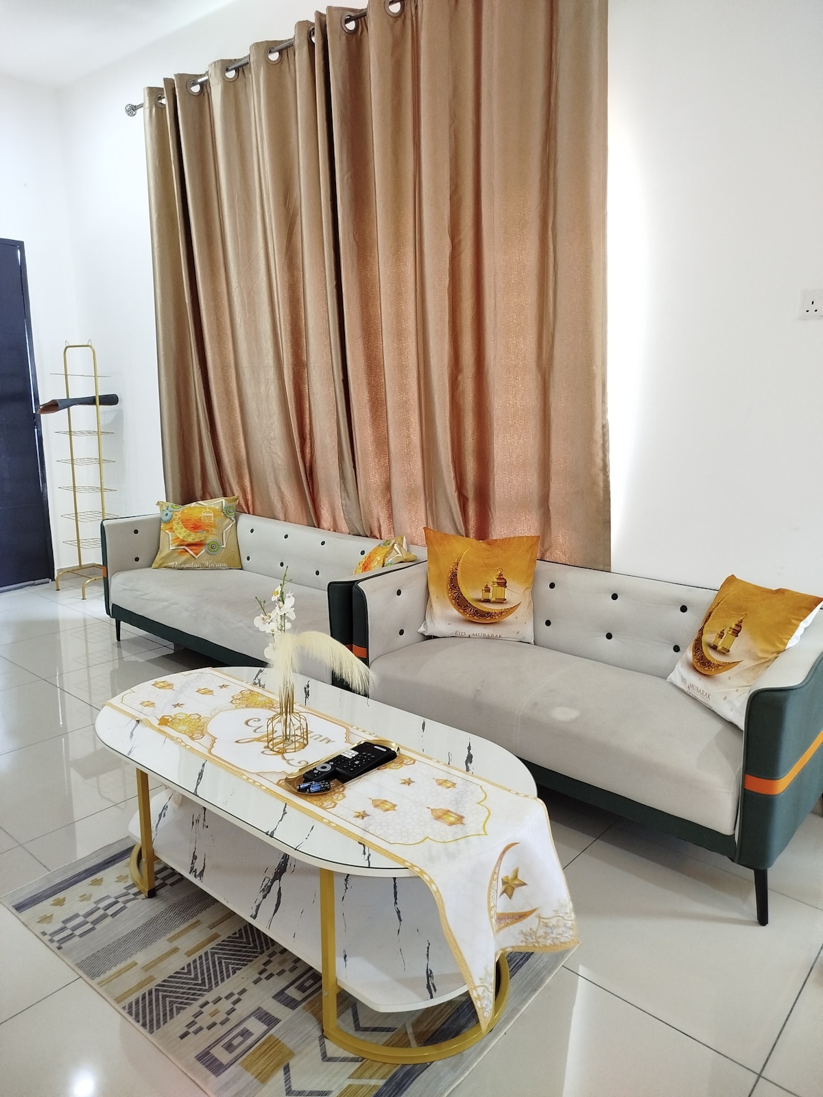 Alojamiento en familia Tok Abah (Gambang) Totalmente climatizado - Casa con terraza de 1 piso (8-10 Pax). - Estacionamiento cubierto + toldo - 3 dormitorios con aire acondicionado (aire acondicionado) y 2 baños. Habitación 1 (2 camas tamaño queen) Cuarto 2 (1 cama queen+Toto) Habitación 3 (1 cama queen+Toto) - Wifi. - Android TV - Netflix - Máquina de masaje de pies Gintell - 8 toallas. - Ducha caliente/calentador de agua - Plancha, tabla de planchar y secador de pelo. - Cofre de hielo - Cocina de gas - Dispensador de agua - microondas - Juego de vajilla -Lavadora +jabón - Cerrado y vigilado.