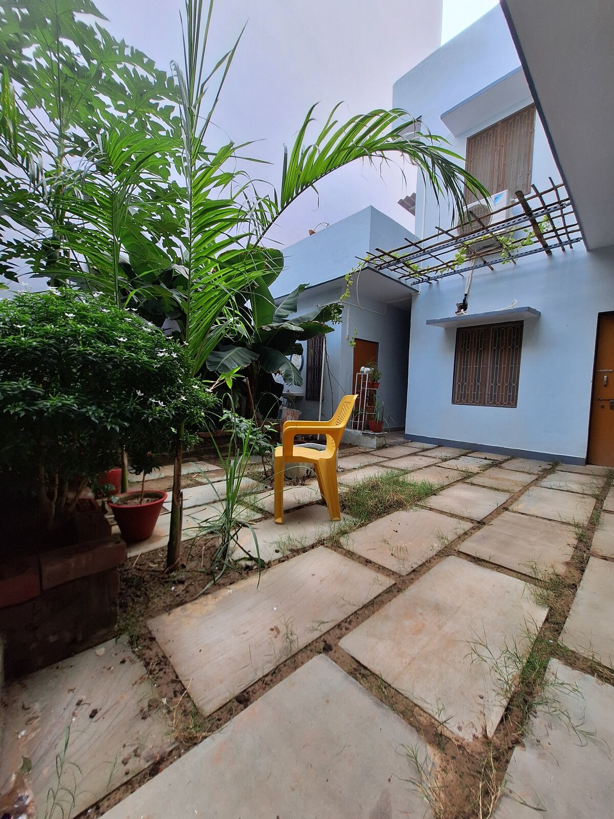 LEE LAS REGLAS DE LA CASA ANTES DE RESERVAR. Ideal para familias, mujeres/viajeros solos y parejas: seguro, tranquilo y hogareño. Una casa sutil y tranquila que disfruta de un amplio patio verde, dos dormitorios con aire acondicionado, cocina con elementos esenciales, espacio de trabajo, wifi y carrom para la recreación. Esta es una casa familiar, no un hotel. Ofrecemos una estancia limpia, cómoda y hogareña con comodidades básicas, pero no servicios de hotel. Por motivos de seguridad, la puerta principal cierra a las 10:30 p. m. NO SE ADMITEN LOCALES ni VISITANTES de Lucknow.
