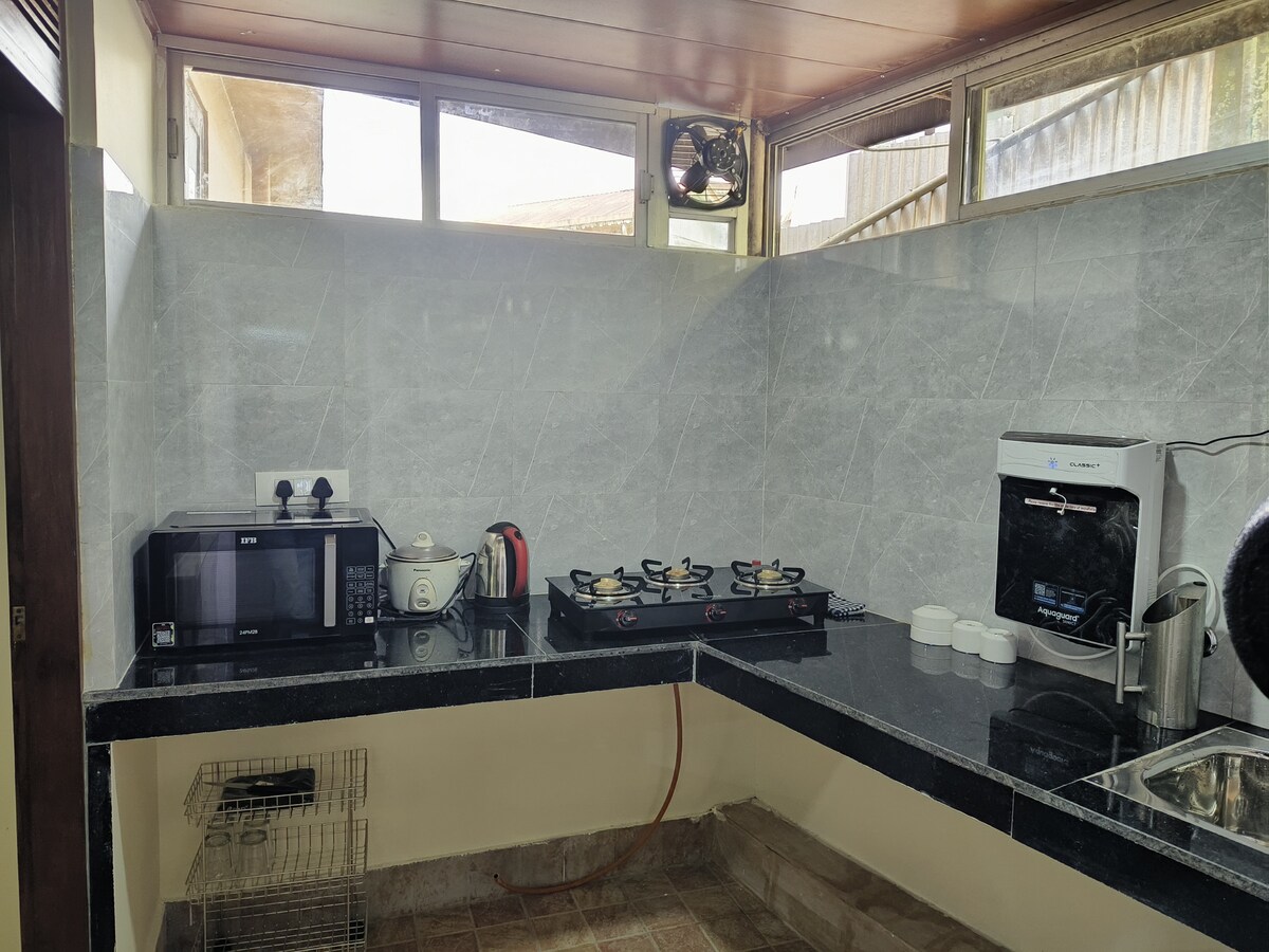 Nuestra oferta es un apartamento totalmente amueblado con una cocina funcional, que es sencilla y cómoda para alojarse. Es ideal para una pareja o una familia de 5 miembros. Proporciona la privacidad y la comodidad de tu propio hogar, en resumen, es un hogar lejos de casa. La ubicación es tranquila y segura, a aproximadamente media hora en coche de M.Gilding, las cataratas Jhakri y el centro de parapente. Está bien comunicado por taxis y no tiene ningún problema de conectividad. Si conduces hasta Sikkim, hay una plaza de aparcamiento para tu coche.