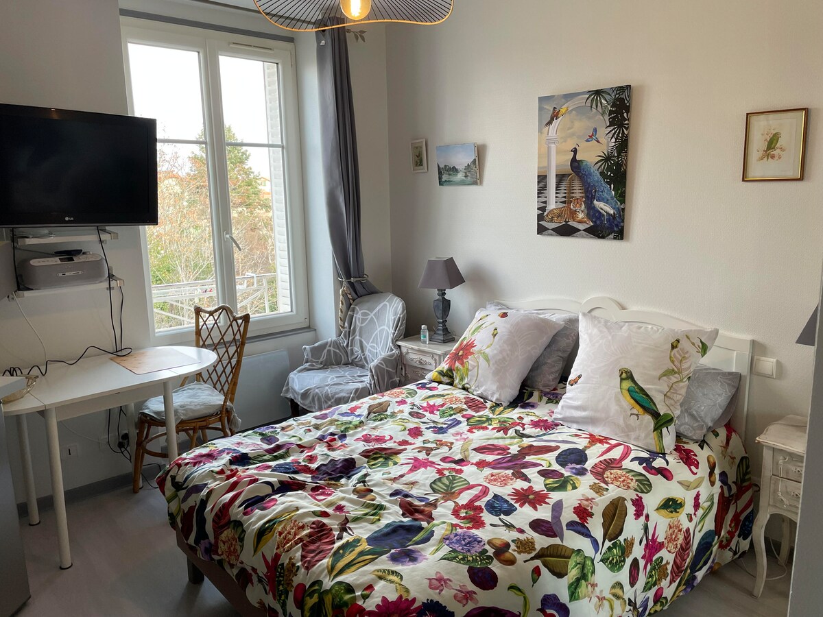 GANNAT, en un pequeño edificio al lado de la estación de tren y cerca de todos los comercios, en el 1.er piso, apto. tipo F1 bis atípico de 40 m2, recién terminado de renovar, que consta de 2 habitaciones: dormitorio (cama doble y vestidor) semiabierto a la sala de estar equipada con sofá cama, mesa, televisor HD de 127 cm, cocina equipada (nevera, campana extractora, horno, microondas, placa de cocción), cuarto de baño con ducha y WC - Internet de muy alta velocidad en wifi (fibra) - Entrada segura - Aparcamiento gratuito en la calle.
