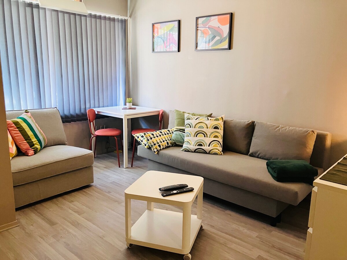Velkommen til en sjarmerende hybel! Dette er en alt-i-ett-leilighet med en koselig sovealkove med dobbeltseng, i tillegg har boligen to sovesofaer. Hybelen er fullt utstyrt for både korte og lengre opphold, med alt du trenger enten du er på farten eller ønsker å slappe av. Dusjprodukter og baderomsprodukter er tilgjengelig. Kjøkkenkrok er utstyrt med en multifunksjonell mikrobølgeovn som kan steke og bake, samt en enkel induksjonskokeplate, kaffetrakter, vannkoker og brødrister. Velkommen!