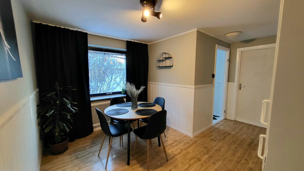 En la casa más alta de Lycksele, vives con vistas al río. Un apartamento encantador con cocina americana bien equipada, dormitorio doble y baño. Vives al lado de la torre de agua, a 10 minutos a pie desde el centro en una zona tranquila. Si hay más de dos de ustedes, también hay una alcoba para dormir con un techo inclinado y una cómoda cama de 120 cm de ancho. Cama plegable de 80 cm para el huésped 4. Sábanas, toallas y desayuno incluidos. No se requiere limpieza. Wifi. Televisión con paquete de canales. Estacionamiento en el patio.