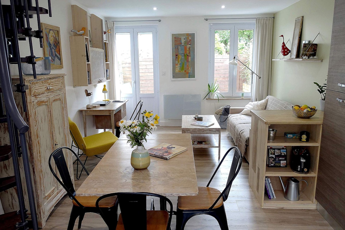 Pequeña casa de 33 m2 situada( a 3 km del centro de Morlaix)en un pequeño pueblo(Ploujean),clasificada con 2 estrellas en "alojamientos turísticos".Situada idealmente para visitar la costa de Perros-Guirrec en Brest.A 25 minutos de Roscoff y Locquirec .En el GR 34.Alquilada como alojamiento turístico desde hace 25 años..Contigua a otra casa. Totalmente equipada y decorada con buen gusto. Posibilidad de alojar a un bebé (cuna, silla).....