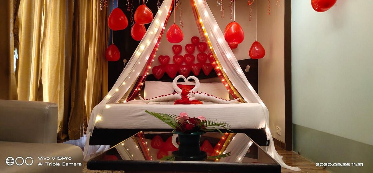 Alojamientos románticos, entra en una habitación decorada y sorprende a tu encantador. El hotel es 100 % seguro y todas las habitaciones están completamente desinfectadas. Se admiten parejas solteras y también aceptamos identificaciones locales. El hotel se encuentra cerca de la estación de metro de Chakala en Andheri East. El servicio a la habitación está disponible con menú E y servicio de registro sin contacto. Las habitaciones del hotel están revestidas con características como wifi gratuito, televisión y aire acondicionado, desayuno de cortesía, servicio de habitaciones las 24 horas y más.