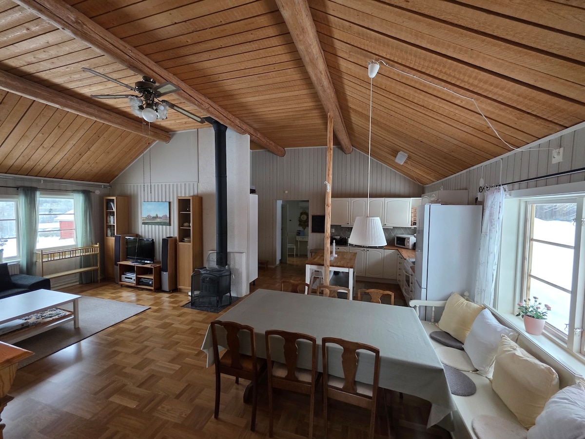 Bienvenido a nuestra propiedad directamente adyacente al pintoresco Högbo Bruk (500 m), donde se ofrece, incluidos campos de Mtb, canchas de pádel, alquiler de canoas, natación, pesca y golf en los meses de verano. También hay una pista de gran altitud para probar para los aventureros. En invierno hay muchas pistas de esquí de fondo y una pista de patinaje sobre hielo disponible, si te gusta el esquí alpino, la montaña real está a unos 25 minutos en coche de aquí. Estacionamiento privado con posibilidad de cargo por auto eléctrico. Centrum a unos 5-6 km.