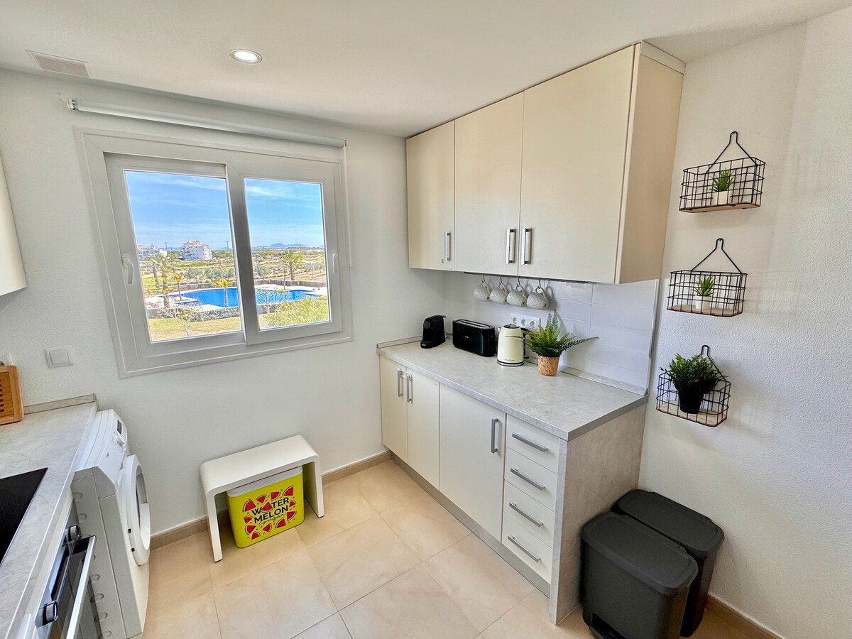 Crearás muchos recuerdos nuevos en este lugar único para las familias. Gran apartamento totalmente equipado con una gran terraza y hermosas vistas a la piscina y al campo de golf. Cocina totalmente equipada (nevera, congelador, cafetera, tostadora, lavavajillas, horno, microondas, lavadora). 1 baño, 2 dormitorios, ambos equipados con camas tamaño king y armarios empotrados. Las mejores playas de la Costa Blanca y la Costa Calida a solo 20 minutos del centro vacacional. Aeropuerto de Alicante a 50 minutos en auto.