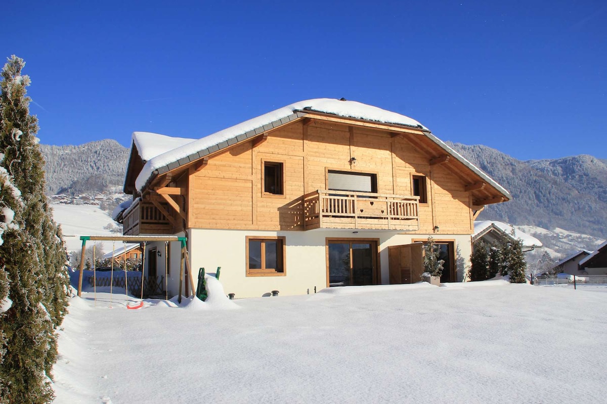 🏡Our little chalet is waiting for YOU ! 🏡 Warm, bright, and functional, it will be your charming little haven during your getaway to discover our beautiful region ! Perfect location near A40 motorway: reach Geneva in 15 min, Annecy in 30 min, Chamonix in 45 min. Ski resorts: Les Brasses 10 min (ideal for beginners/attractive lift pass) + Les Gets, Avoriaz, Flaine, Clusaz... en 30 min. In a village with all local shops. SAUNA in the basement and JACUZZI in the adjacent garden (extra charge).