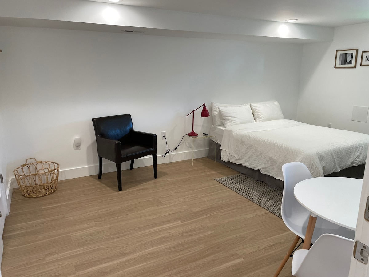 Covid-19 safe and separate entrance suite, with no shared utilities (radiator in winter and wall unit AC in summer). The space is bright and has windows facing East and South. The apartment has direct access to a private patio, where you can relax with a cup of coffee in the morning sun. The general atmosphere is cozy yet it has a contemporary feel thanks to its bamboo floors in the bedroom and modern tiles in the bathroom and kitchen. No smoking is allowed in the unit.
