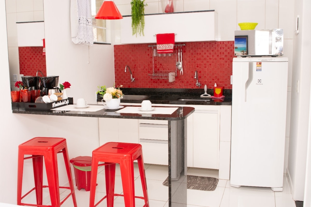acogedor apartamento totalmente equipado nuevo, camas cómodas, equipado con aire acondicionado, wi-fi y Sky TV por cable, cocina completa con purificador de agua en una zona muy tranquila cerca de las playas de Geribá y Ferradurinha con una buena panadería en la esquina de la casa.